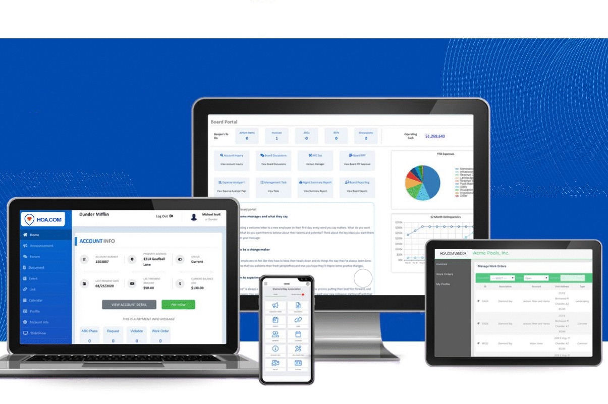 Our combined tools starting with our Web Portal is what sets us apart. The ultimate tools for seamless community management and governance. Financial tracking, Maintenance coordination and Communication tools, in the palm of your hands provides 24/7 access to the resources homeowners and board members need to keep the community running smoothly. Whether you’re a board member overseeing operations or a homeowner checking on dues, our tools brings all essential tools together in one user-friendly platform.